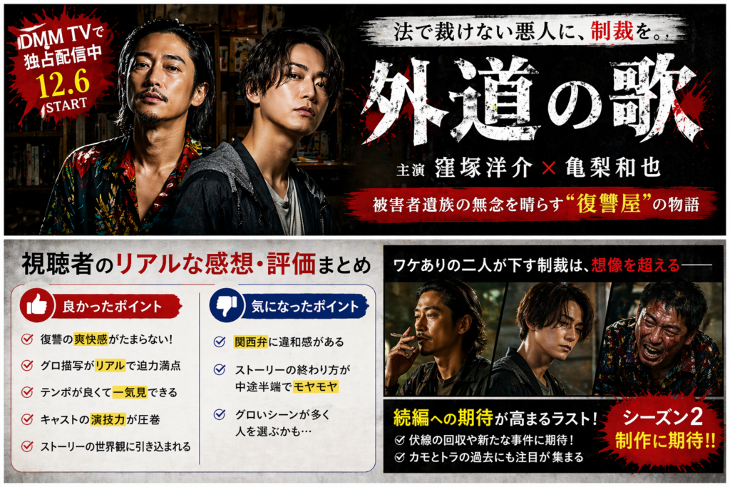 【感想・評価】外道の歌は面白い?グロい?実際に観た本音レビュー【DMM TV】